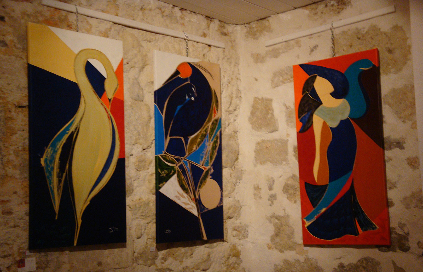 Peintures de Lantourne qui, en plus, découpe, martèle les vieux métaux précieux qu'Hélène Méry monte en ravissants bijoux ; céramiques de l'artiste créateur Alain Chantel, tableaux avec ou sans chats de Danièle Maffray, premières aquarelles de SLM, meubles en carton de Sabine Roux, peintures et sculptures de Morlaës qui privilégie « Le Petit Bleu » pour en faire du papier compressé (il l'a dit !). Et puis Françoise Corcuera et ses peintures-collages, Malok, Gillette, Sophie Cohen Scali, Sylvie Chemla, Christine de Oliveira sont à voir et revoir sans modération.