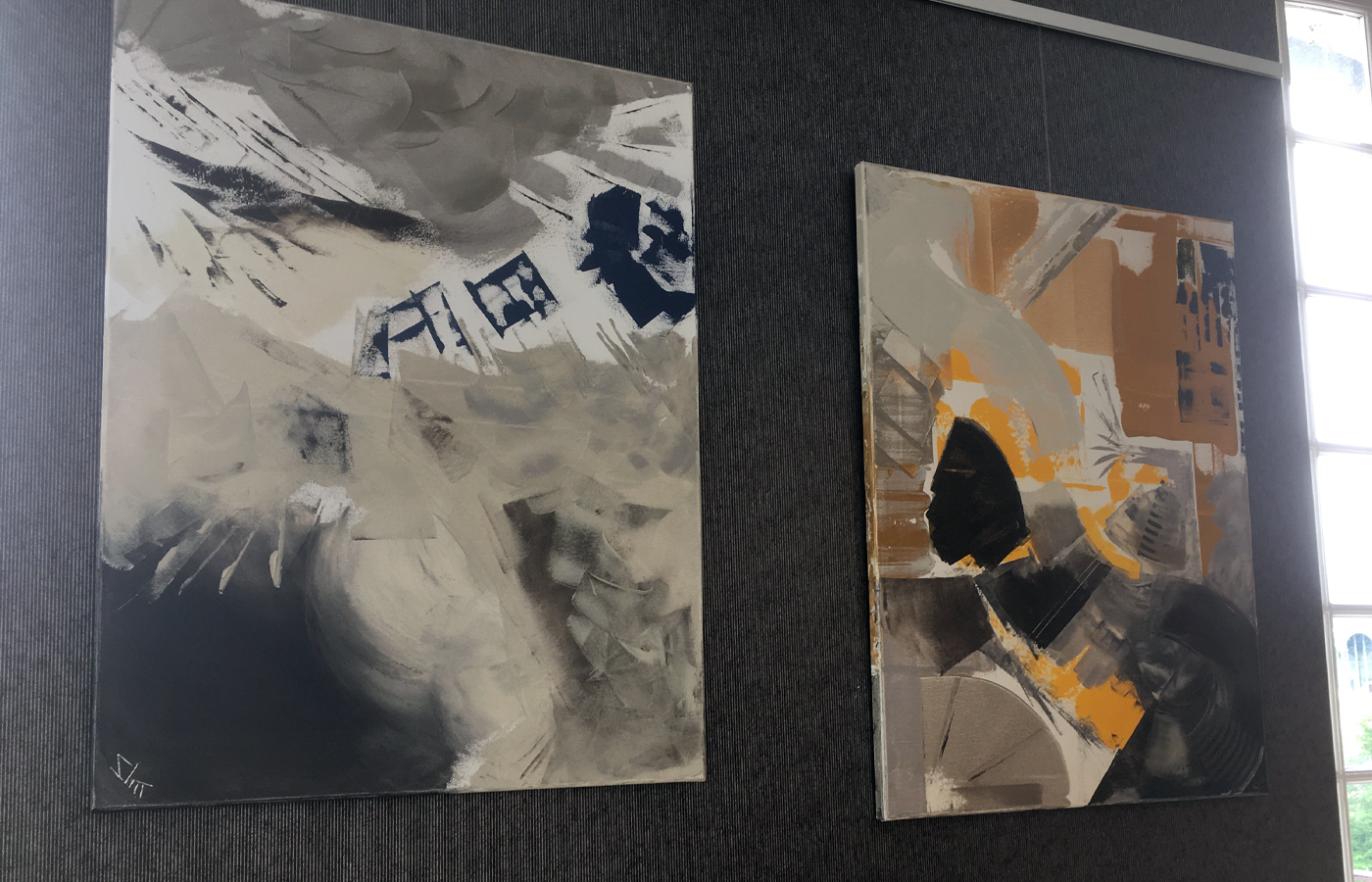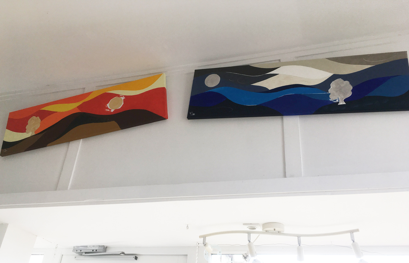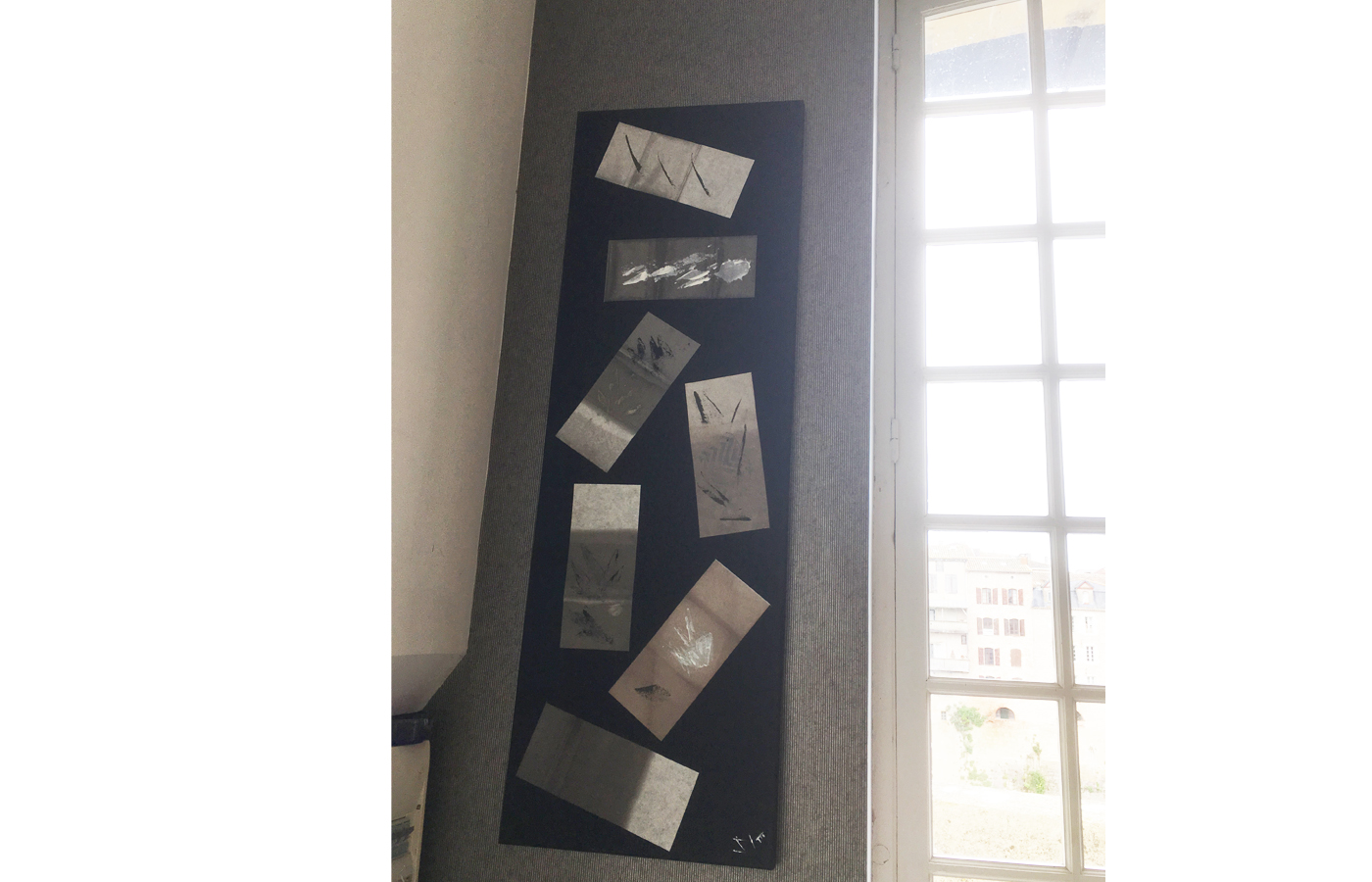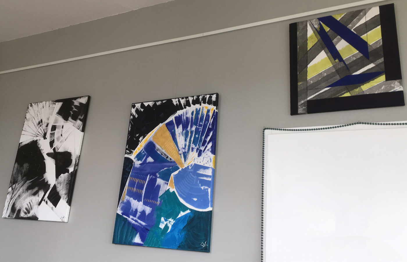 Les cimaises du salon de thé "La Parenthèse" reçoivent trois tableaux colorés et un tableau monochrome de sa série Images Mentales.